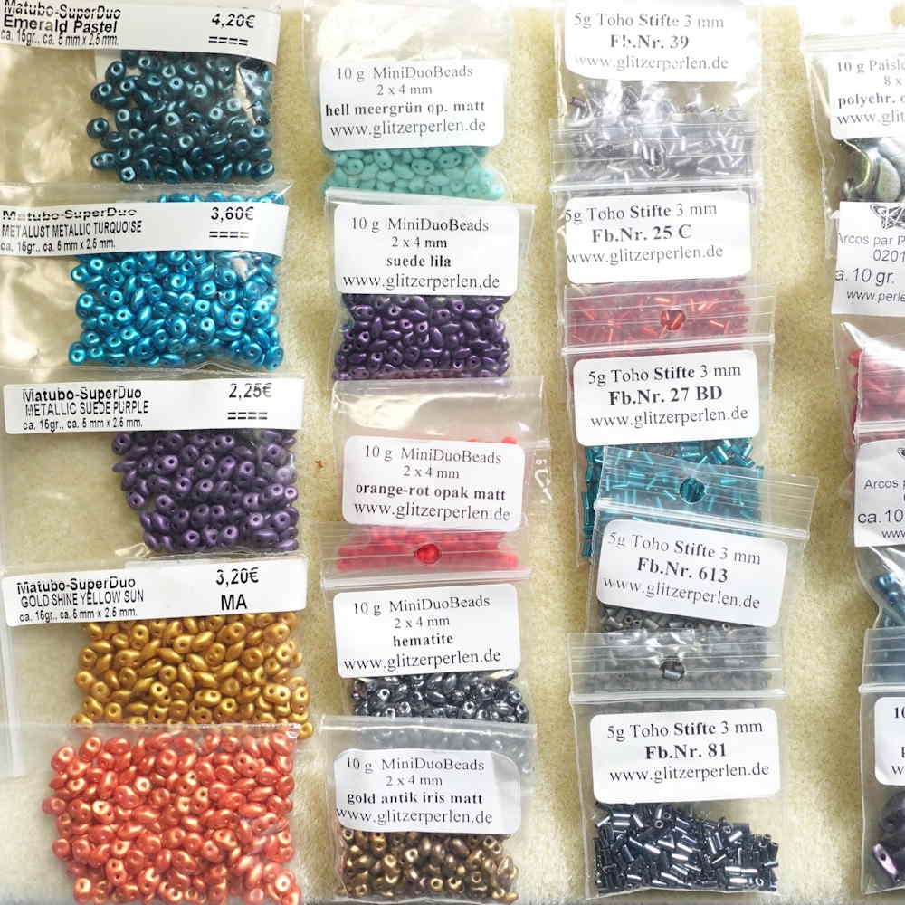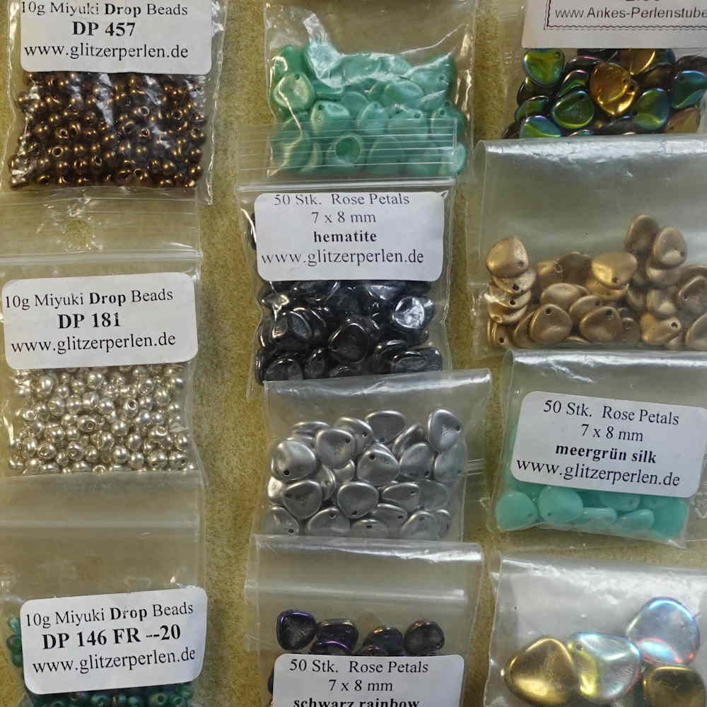 - Seed Beads (1,5 – 4,4 mm): von Miyuki und Toho (Japan) – sehr gleichmäßig
